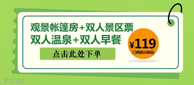 ④石屏龙韵养生谷【观景帐篷+观景帐篷台+双人(景区门票+温泉票+早餐)】抢购票1张含:观景帐篷1顶+观景帐篷台1个+双人景区门票(松间草坪露营地、松林天然大氧吧、龙韵清翠竹海、烂漫樱花谷、金色银谷、观光木栈道、森林健康步道、药山、灵芝基地、菌子区、露天游乐场、水上乐园、溜索、荡秋千、网红桥、花腰激情篝火晚会、非遗传承“海菜腔烟盒舞”(节假日演出)等)+双人温泉票(露天温泉汤池)+双人自助早餐(米线稀饭,牛奶鸡蛋,包子馒头,红薯糕点,水果等);提供免费停车场