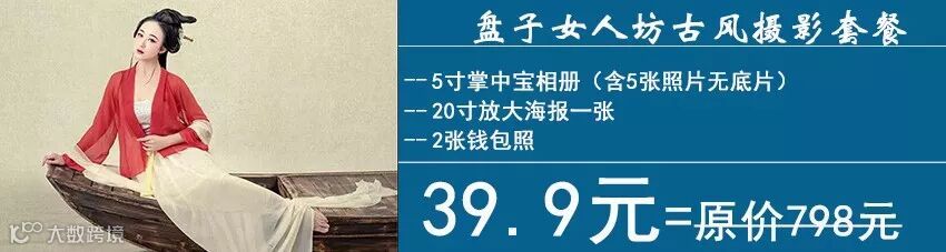 本票包含:盘子女人坊古风摄影拍摄套餐1套/人,包含:技术服务:初级团队服务,妆面:彩妆及原创古典发式造型1款,服装:vip服装一套+自备服一套,后期产品:5寸掌中宝相册(含5张照片无底片)+ 20寸放大海报一张+2张钱包照,超值服务:专职客服、技术团队全程服务+全面采用自主设计服装服饰+全面采用国际知名彩妆品牌