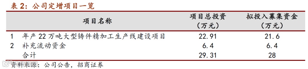 坚定扩产,巩固规模优势。自上市以来,公司持续扩大规模,产能由20万吨扩张到40万吨,已成为全球风电铸件领域龙头。2020年6月23日公司非公开发行募资28亿元主要用于扩产,预计2022年公司产能将扩张至63万吨。