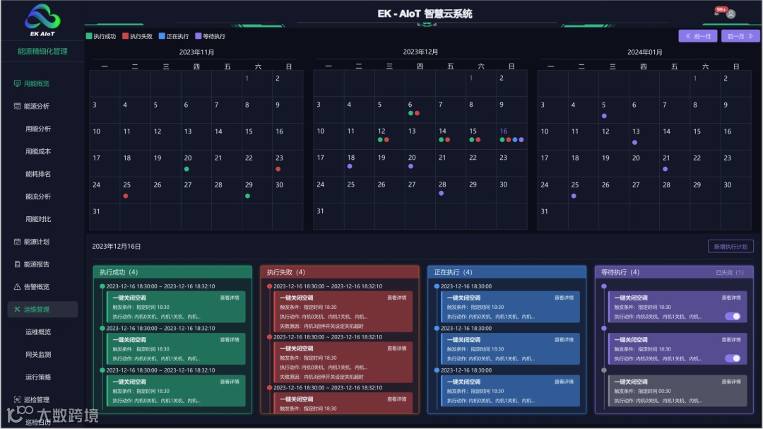 EK-AIoT智慧云系统是EK工业空调自主研发的工业物联网智慧能管平台,集AI计算、数字孪生、互联网、物联网、移动互联网于一体,与中央空调、锂电行业转轮除湿等工业场景相结合,围绕数智化节能增效和数智化运维管理这两点核心价值提供服务,提供了工业场景云端智能控制、远程运维、线上协同、节能增效等端到端一体式解决方案。