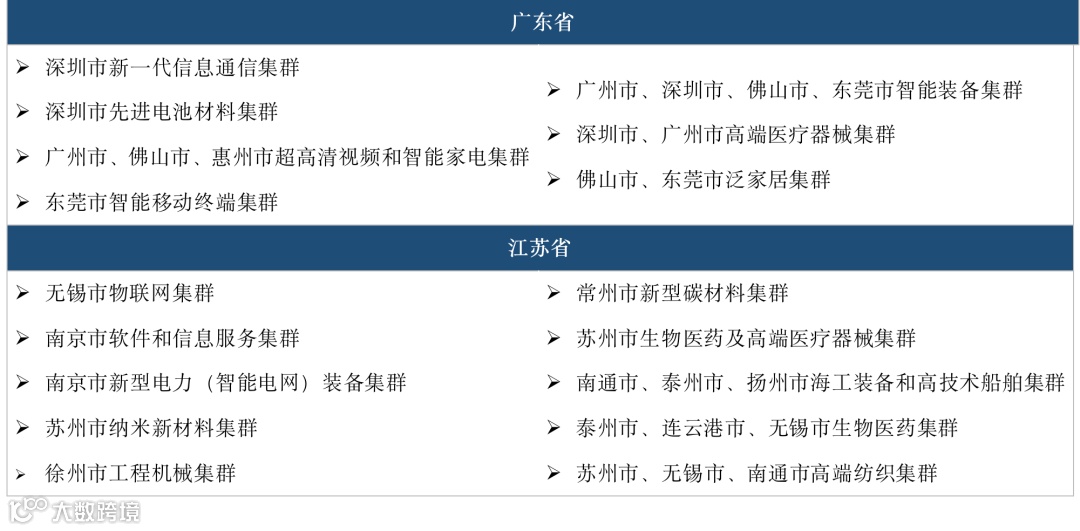 从省市分布来看,江苏共有10个先进制造业集群入选“国家队”,数量位居全国第一;其次是广东,有7个先进制造业集群入围;排在第三位的是浙江和湖南,均拥有4个先进制造业集群。从城市分布来看,深圳入选国家先进制造业集群数量最多,为4家;广州、上海、长沙、东莞、佛山、成都、苏州、无锡等城市均有3家入选。