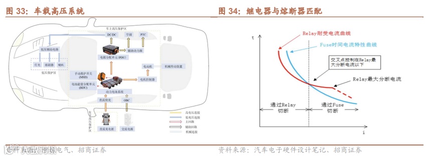 车端元器件匹配高电压、大电流要求。800V系统元器件继电器、熔断器、薄膜电容单车价值量显著提升,关注公司宏发股份、中熔电气(汽车)、法拉电子(电子)。