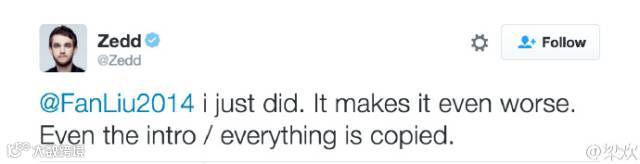 事情的来龙去脉我在这里就不详细讲了,该话题在新浪微博上已经上了好几天的热搜,@新浪娱乐等官方平台都有中立的报道。具体情况大概就是关于歌手@大张伟在《盖世英雄》这个音乐综艺节目中演唱了新改编的“不老男神”张信哲的歌曲《爱如潮水》,被音乐人@梁欢质疑为抄袭国外知名DJ Zedd的作品《Candyman》。事件发酵的热度之快是因为包括梁欢本人的微博每天的刷屏以及大张伟和他的官方工作室的回应,甚至Zedd本人在Twitter上对事件的亲自回应都到了推波助澜的作用。