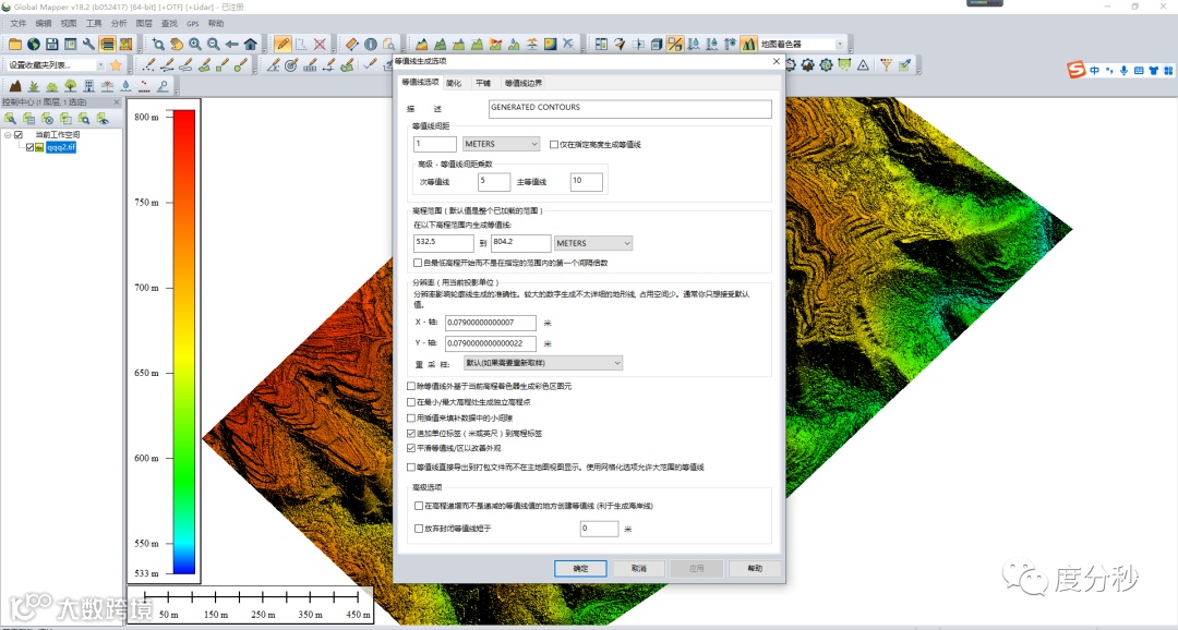 2.点击分析——生成等高线(从地面网格)。