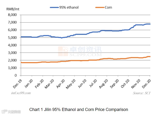 In December, the feedstock corn and acetic acid prices trended up rapidly, pushing up the ethanol production cost. Currently, the high-end corn prices in Shandong rise to RMB 2,680/mt, hitting an all-time high. In addition, the cost of synthetic ethanol also increased rapidly, and some synthetic ethanol producers turned profits into losses. In the long term, the ethanol cost should be focused on.