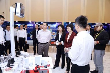 与会领导和嘉宾参观并体验了大赛会场区域展示的浙江省赛区获奖项目。