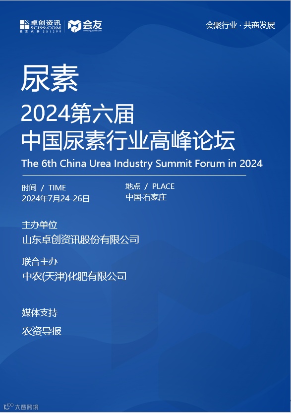 2024年上半年干铵市场运行的高点出现在1月初,价格为644元/吨;低点出现在4月底,价格为471元/吨。一方面原料煤炭、合成氨主基调偏弱,成本面支撑力度有限。另一方面联碱新产能规划投产大于需求端增速,供应宽松,业者储备意愿保守,氯化铵价格显著回落。5月国内春季肥刚需补货较往年偏强,价格触底反弹并持续至月底。6月国内夏季肥生产对氯化铵拉动不足,价格再次步入下行通道。7月份,氯化铵内销需求淡季,有继续松动预期。