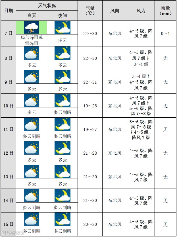 受多股冷空气扩散影响,7日下午—16日我市及海上风力持续较大。最大风力时段出现在9日夜间—11日夜间。预计厦门内海及各大桥、高海拔山区东北风最大可达6—7级、阵风8—9级;崇武到东山沿海最大可达7—8级、阵风9—10级 ;台湾海峡南部最大可达8—9级、阵风10—11级。