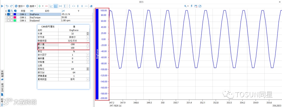 TSMaster图形模块还支持添加自定义信号并进行图形分析。自定义信号的特点在于需要用户去设置信号的ID、放大因子、起始位以及位长度等信息,进而将报文里的信号在图形窗口里解析出来。