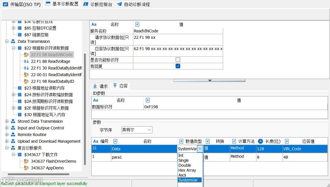 自动诊断流程:支持多组流程、诊断服务鼠标点选配置、刷写流程一键执行、诊断系统变量外部调用。