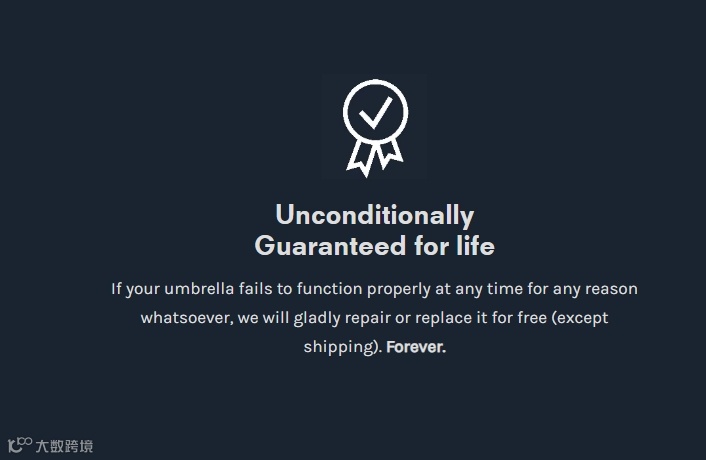 高端伞具品牌的价格,是远高于普通雨伞的,因此消费者是会希望其能使用更长的时间的。Davek提供的终生保修服务,既能延长产品的使用周期,也能增强消费者对于产品质量的信心,所以其也同样能够有效促进转化。