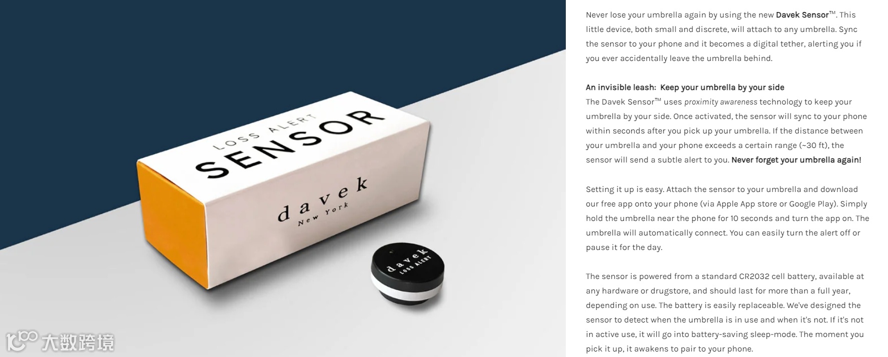 为帮助消费者解决这一问题,也打消消费者这方面的顾虑,Davek研发了丢失报警器,如果雨伞与手机超出一定的距离,警报就会出现。这能够帮助消费者及时察觉雨伞的丢失,从而提高雨伞寻回率。