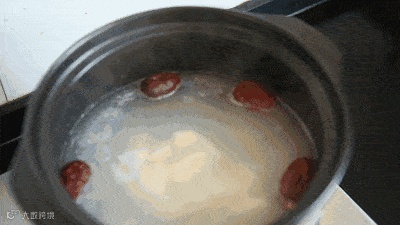 白乎乎的主角再加上几根排骨切块放入锅内,慢慢地咕嘟咕嘟炖着。