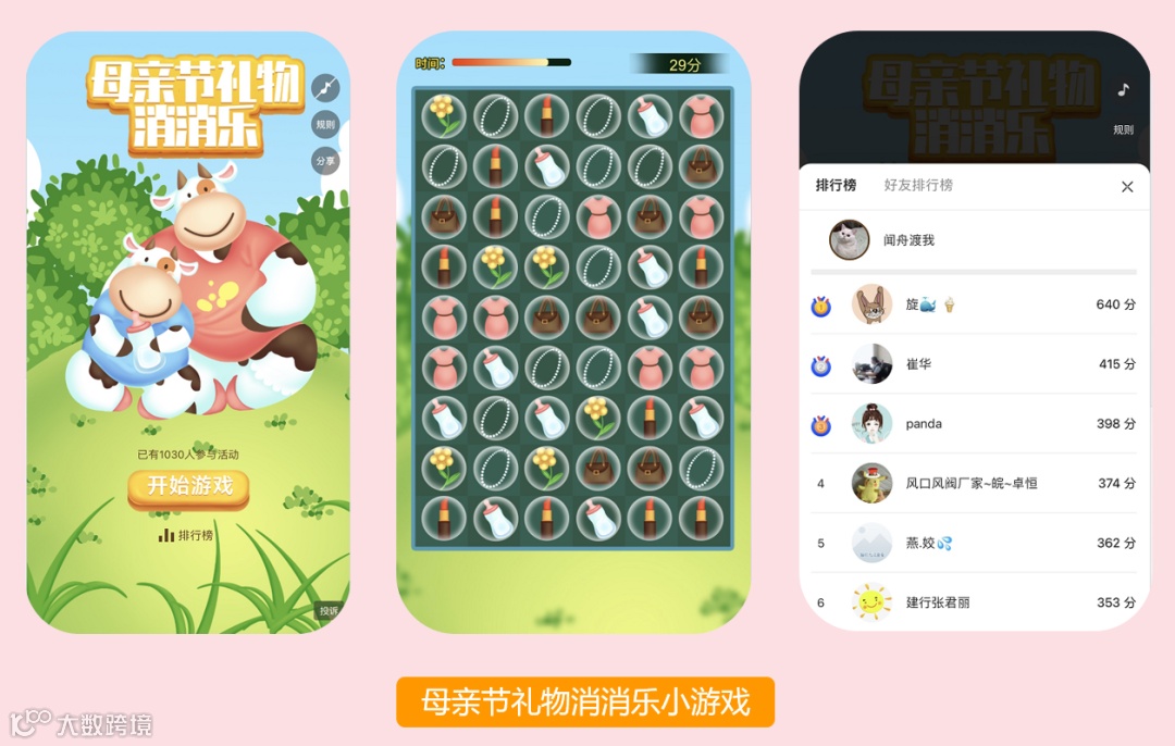 游戏化营销十分契合大型节点的需求,在母亲节中可以将节日热点和亲子互动相结合,打造老少皆宜的母亲节小游戏玩法,下面推荐2款母亲节小游戏