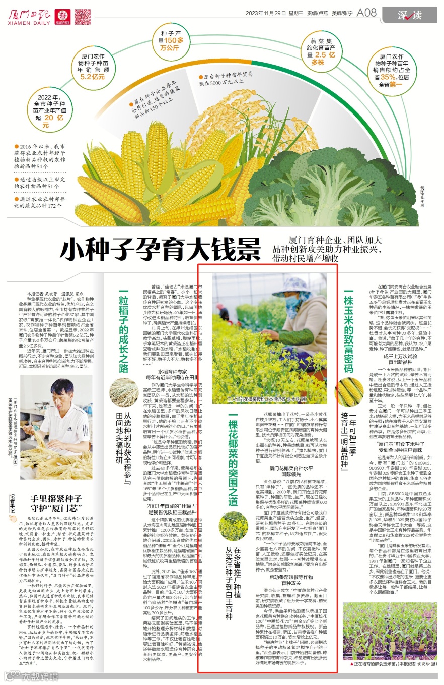 近日,厦门日报专访了厦门市育种企业、团队,入驻中智启达科创大厦的种子企业——中厦种籽,位列其中。