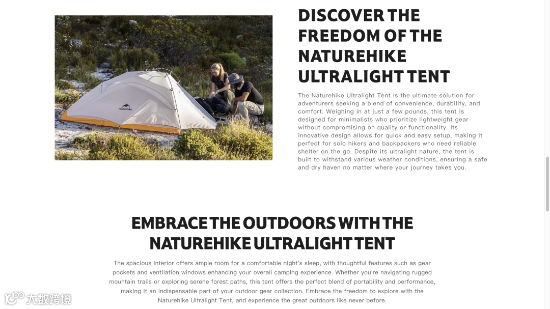 许多户外品牌出海初期陷入困境:依赖亚马逊、eBay 等平台佣金高,自建独立站又缺乏流量。Naturehike 则通过“SEO + 红人营销 + 多渠道协同”策略,在冷启动阶段实现稳定增长。