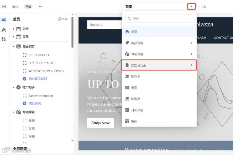 - 提供自定义页面功能,无需代码即可搭建品牌故事专区。