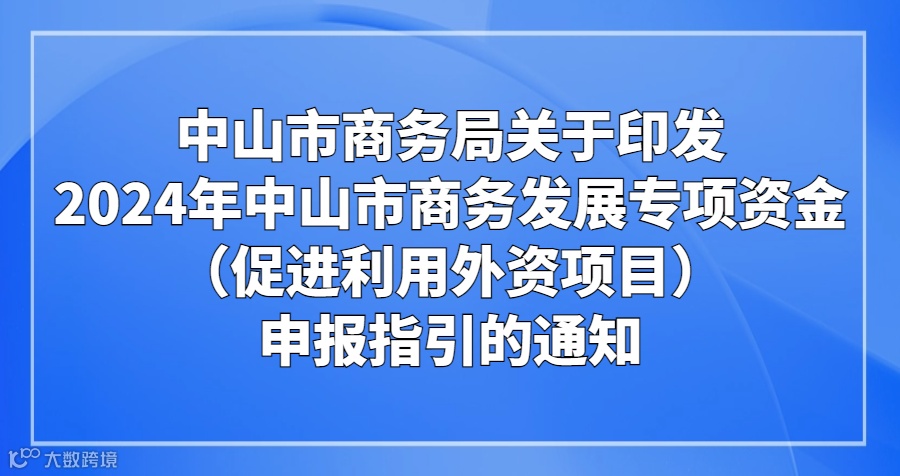2024年中山市商务发展专项资金(促进利用外资项目)申报工作启动