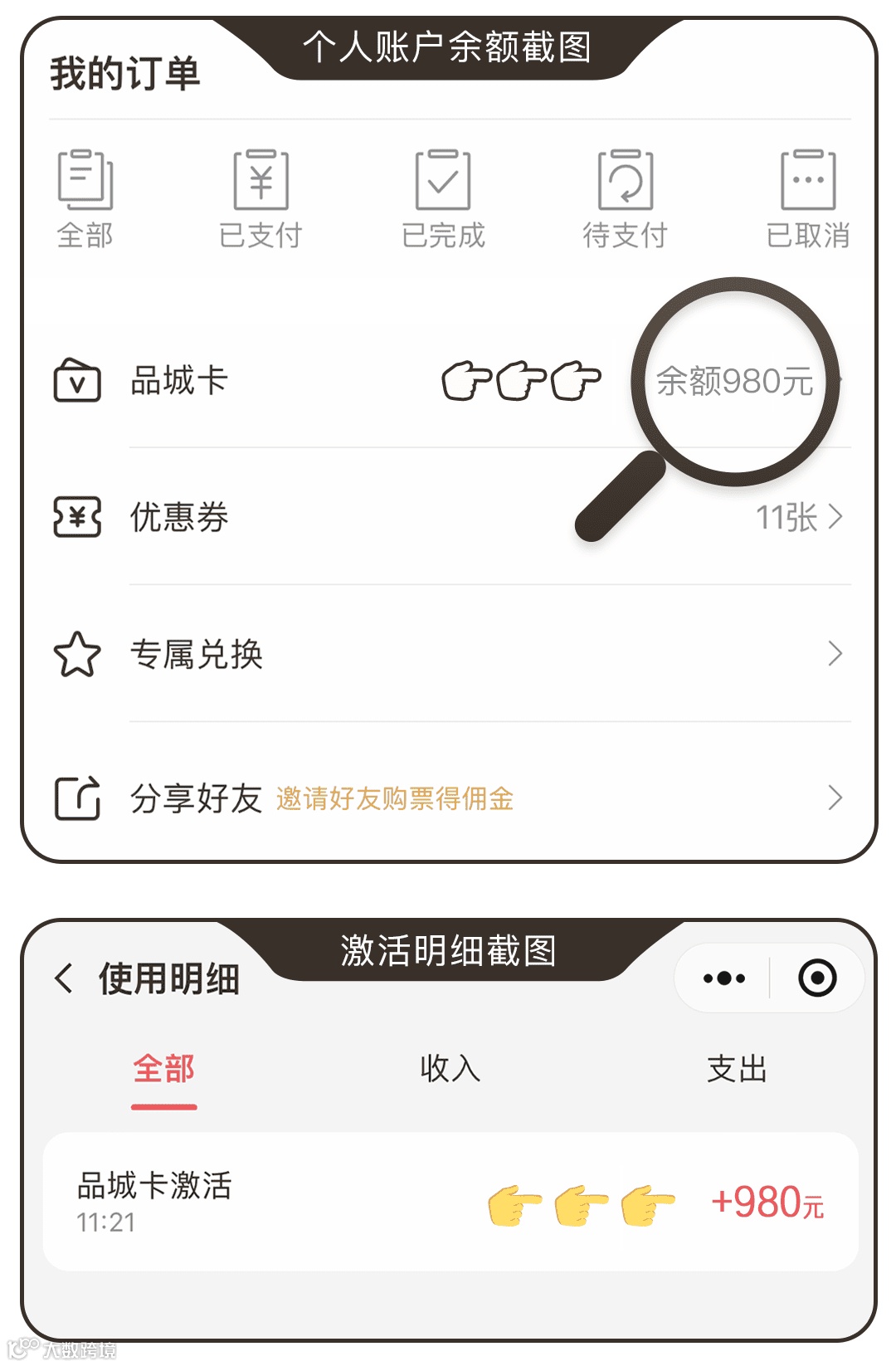 1.在线购买后自动激活980元余额卡