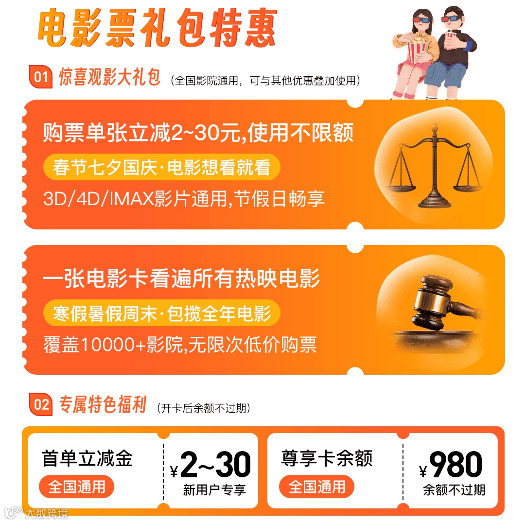 全国影院通用980元电影卡