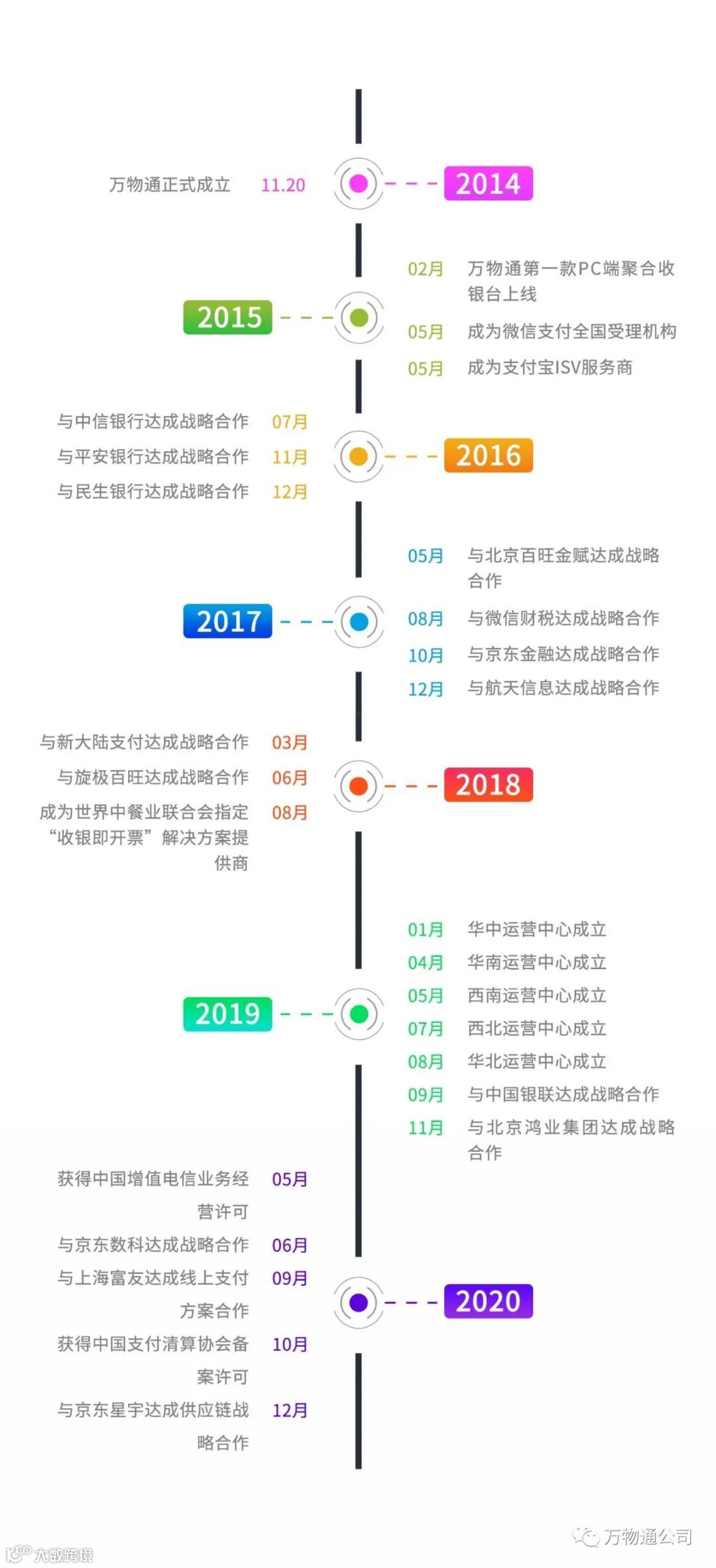 万物通科技(北京)有限公司(以下简称:万物通)成立于2014年,伴随着中国移动支付大爆炸而生,是国内首批从事移动支付运营服务及产品研发的高新技术企业,为第三方支付公司、商业银行及集团连锁企业等各行业客户提供移动支付和电子发票产品解决方案。累计服务过的客户近万家,积累了丰富的行业资源和运营经验。
