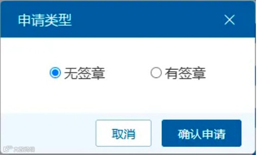 导出/打印。当申请状态显示为“有签章已生成”或“无签章已生成”时,可执行“导出”或“打印”操作,并查看操作记录。