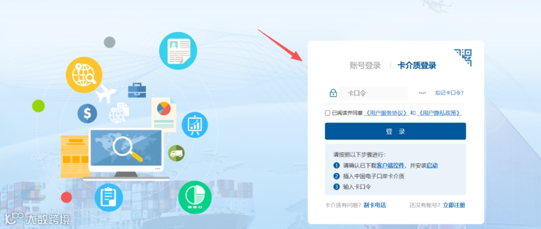 注意:必须使用报关单收发货人企业的法人卡介质进行登录。