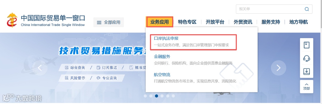 登录“中国国际贸易单一窗口”标准版门户网站(https://www.singlewindow.cn/),进入“业务应用”页面,点击“口岸执法申报”栏目下的“货物申报”模块,选择“报关单证查询打印”功能,进入系统登录界面。