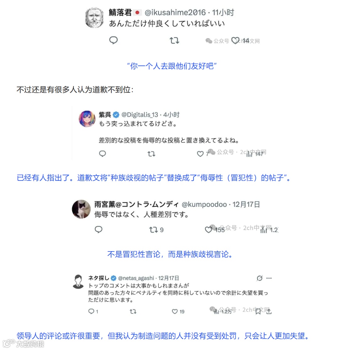 日本媒体称芬兰总理多平台同步致歉为“诚意满满”,但部分民众批评其将“种族歧视”淡化为“冒犯性言论”,回避问题本质。有评论指出:“制造风波者未受惩处,道歉难以服众。”