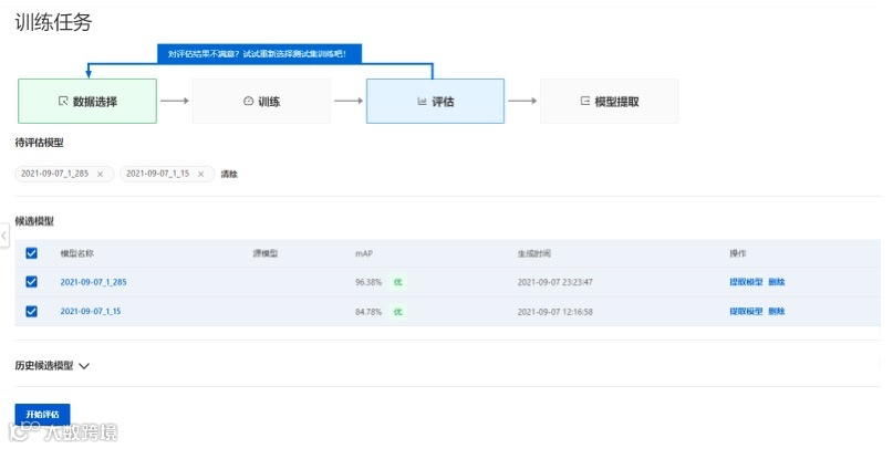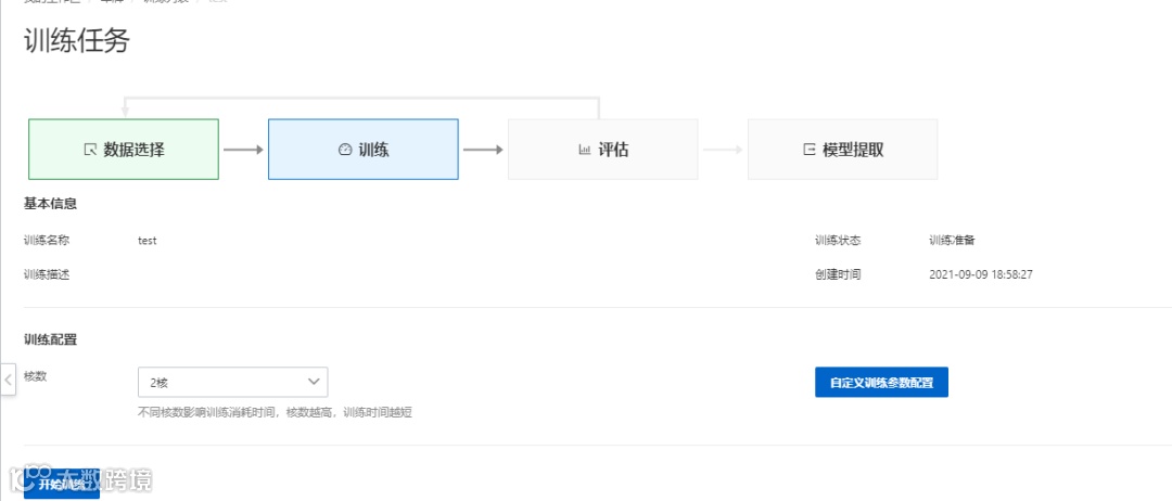 以工业视觉智能平台典型训练任务为例,流程包括数据选择、训练、评估、模型提取四个阶段,分别调用底层各模块协同完成。平台任务配置页面支持模型选择、训练参数、图像预处理等关键参数设定。
