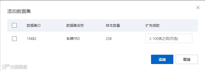 数据配置由默认设置与平台交互信息融合生成。用户可在平台选择数据集、标签类别及扩充倍数(如图9),触发对应算子执行。