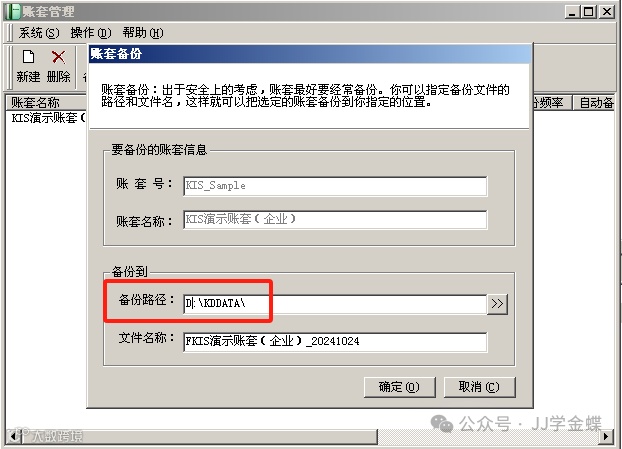 1、金蝶KIS专业版14.0及之前版本的账套备份: