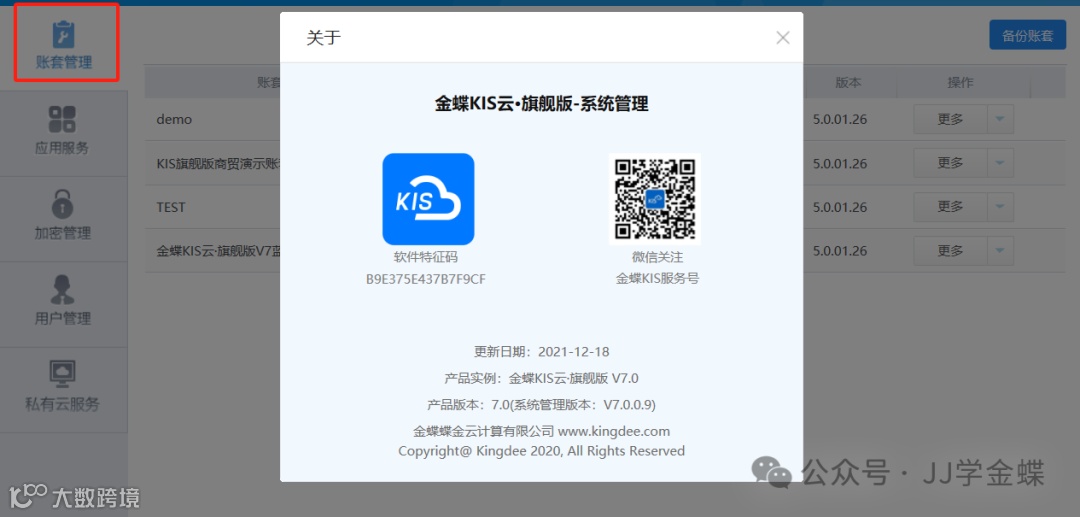 在V7.0中综合补丁对系统管理的功能做了优化,也支持与商贸版和专业版一样的账套管理功能,具体操作不在这里赘述,可以参考商贸版和专业版的账套备份操作。