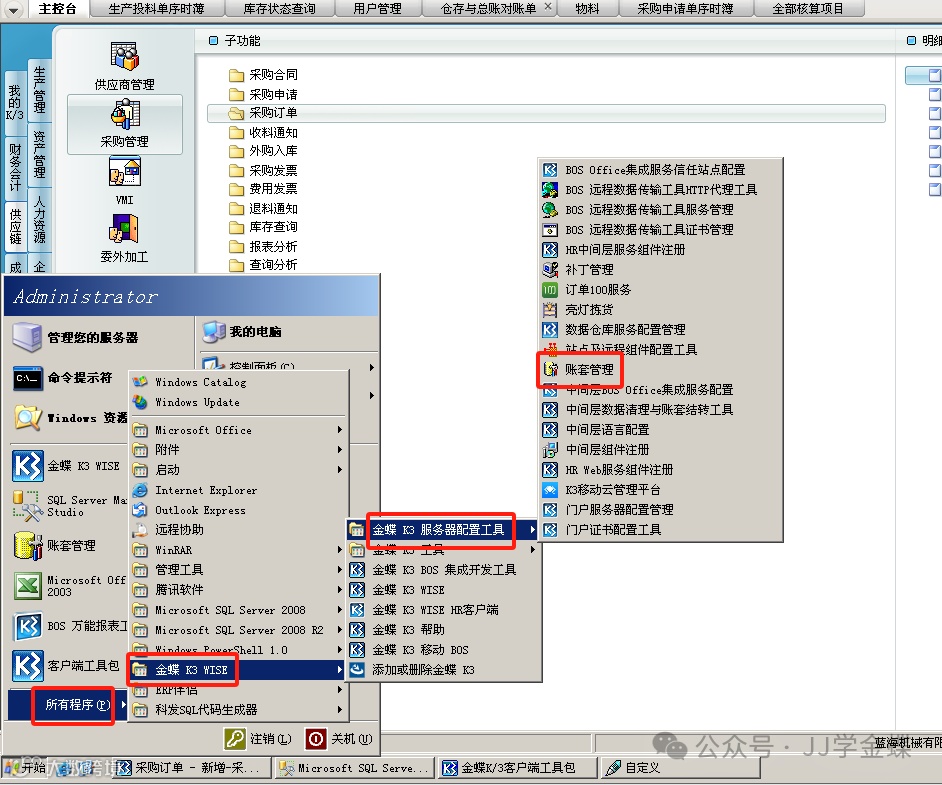 1、点【开始】-【程序】-【金蝶K3WISE】-【金蝶K3服务器配置工具】-【账套管理】