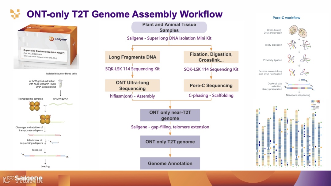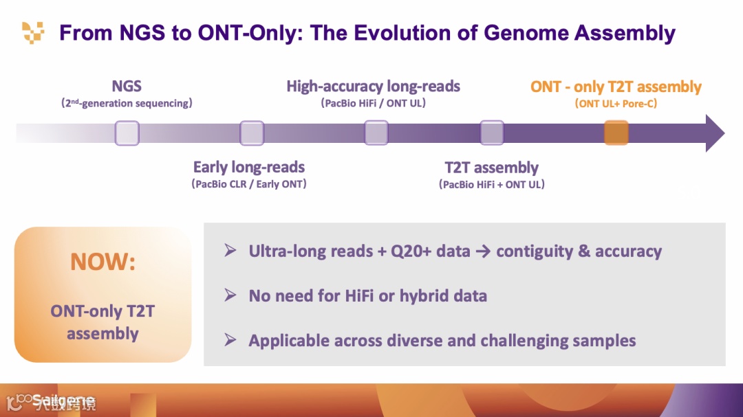 系统展示“ALL in ONT”整体技术路线:从超长读长基因组组装、T2T 组装到多组学一体化分析。