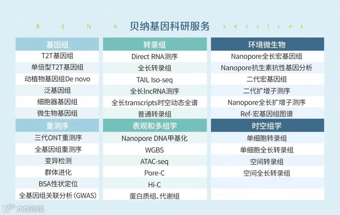 贝纳基因是一家专注于长读长测序与多组学整体解决方案的科技公司,致力于为全球科研团队提供从实验设计、样本处理、测序执行到数据分析与结果解读的一站式服务。公司业务广泛覆盖植物、动物、微生物及多种特殊物种类型,尤其在超长读长基因组组装、T2T 组装、泛基因组构建和基于 ONT 的多组学研究方面具有显著优势。
