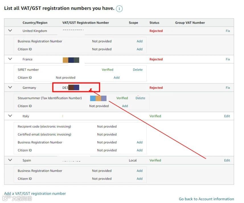 为了帮助大家更好地了解如何提供截图数据,我们特意准备了部分示例图片。示例图片将展示如何证明原主体的DE税号被拒绝以及店铺没有德国DE税号的情况。