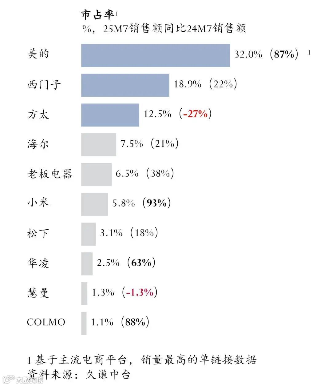 据久谦中台电商聚合数据库显示,2025年7月,洗碗机市场呈现出明显的头部效应和新兴品牌的快速增长。