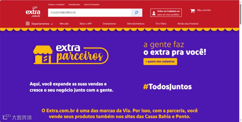Extra创立于2003年,是巴西零售公司Via(原Via Varejo)旗下附属公司Casas Bahia经营的平台,Extra电商平台支持第一方(供应商)和第三方电子商务(Marketplace市场卖家),专注于销售家居用品、电子产品和家电等,每月访问量接近3000万。