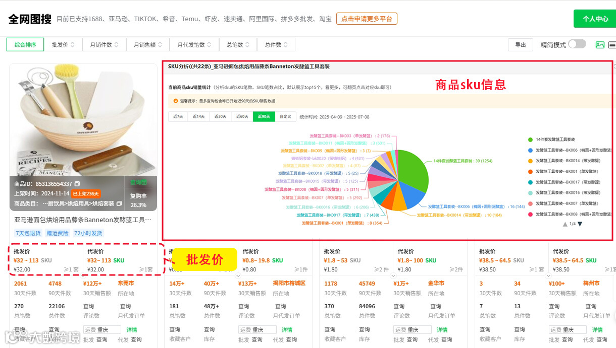 之后再返回1688选品库查看货源的批发价,核算利润;多选择一些sku增加用户的选择性,吸引消费者购买,最后敲定心仪的供应商,考虑是否能够长期合作。