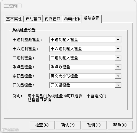 在MCGSPro软件的主控窗口系统设置选项中,将自定义的键盘窗口分别对应替换掉系统默认键盘。
