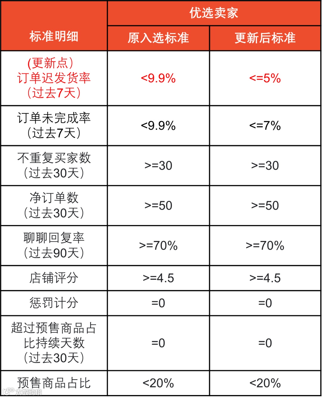 现有优选卖家:首批未达标者将于3月4日被取消资格;平台每周持续评估,未达标者将被取消资格。
