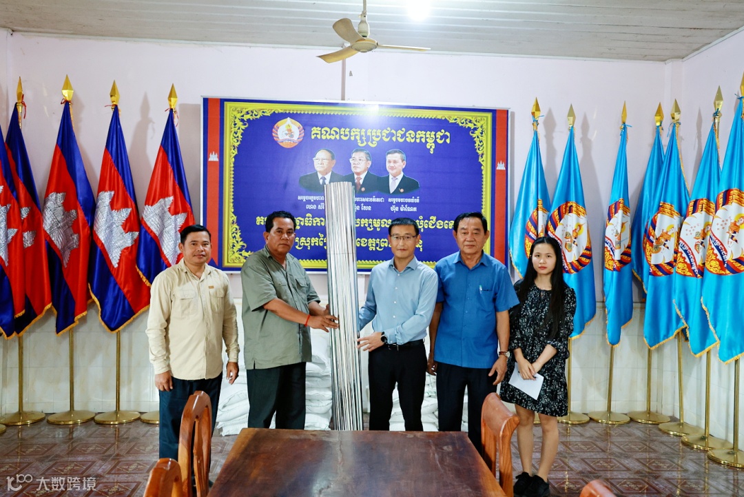 11月22日,西港特区公司副总经理刘连池代表公司向西哈努克省波雷诺县牛脚乡政府捐赠了200张盖屋铁皮,用于帮助受台风影响的村民重建家园,牛脚乡人民党副主席CHHENG SETH代表灾民接受捐赠。