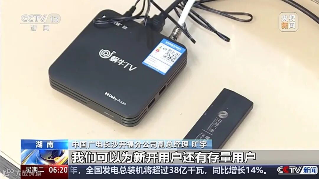 中国广电长沙开福分公司副总经理 旷宇:在长沙片区,今年11月开始正式启动,我们可以为新开用户和存量用户,置换成这种微插机顶盒,清晰度更高。