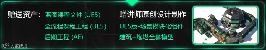 建模课程(设定图,MAYA文件,SP制作源文件),课程的蓝图文件,实操课程UE5工程文件,讲师制作的美术资源,实操课程AE后期合成工程