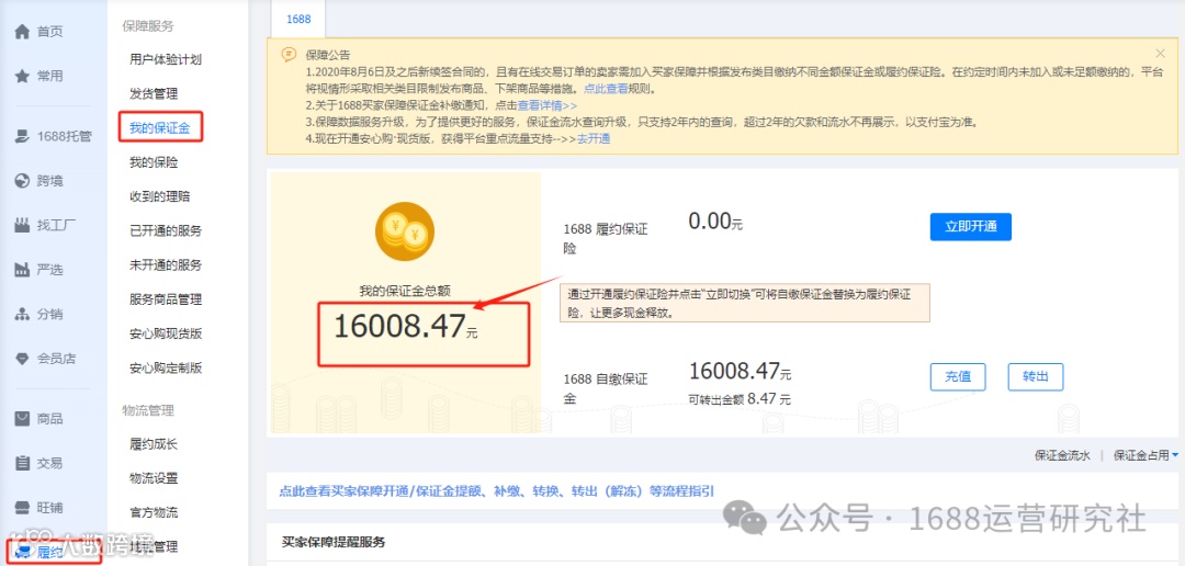 若商家在服务过程中存在严重违规情节(如发货超时或违约),1688将扣除对应保证金额度。商家需在14天内通过现金或履约保证险形式完成足额缴纳。
