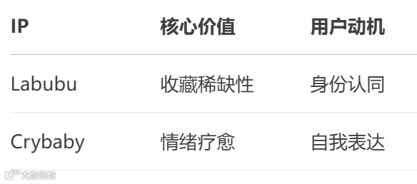 与Labubu满足收藏欲不同,Crybaby凭借“真实脆弱感”成为情感出口,眼泪成为高价值的社交符号。
