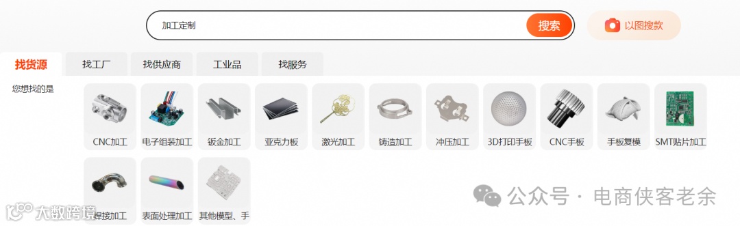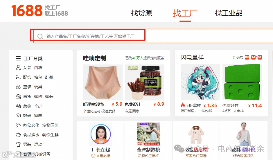 1688找工厂板块设有专属加工定制链接和导购逻辑,并提供黄色标签认证。