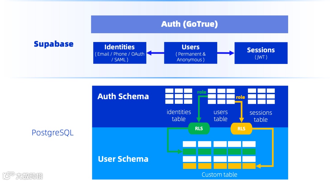 - 认证授权:通过GoTrue实现邮箱密码、手机登录、无密码登录、SSO及OAuth(支持GitHub、Google等第三方平台)。