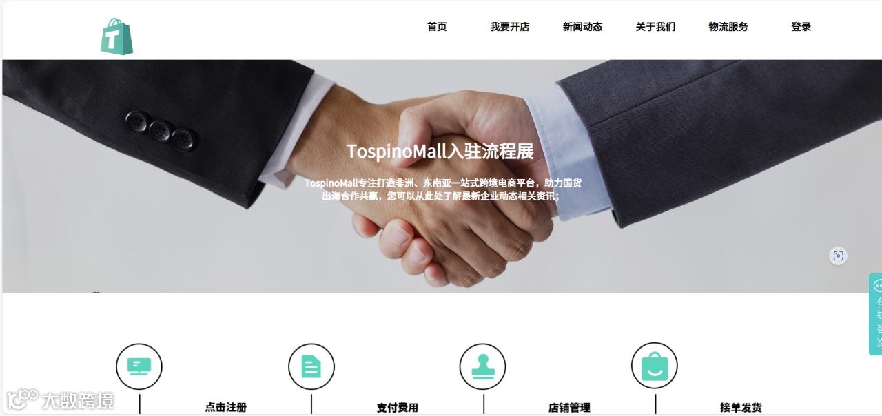 Tospino是一家专注于非洲市场的跨境电商平台,旨在为第三世界发展中国家提供电子商务服务。该平台旗下包括TospinoMall(零售)和TospinoMarket(批发)两个部分,分别于2019年4月和2020年3月上线。Tospino主要服务于非洲市场,包括加纳、越南、乌干达、坦桑尼亚和肯尼亚等国家。